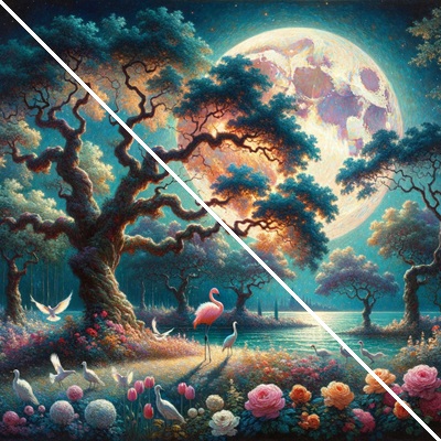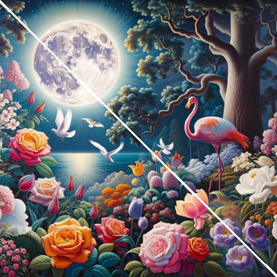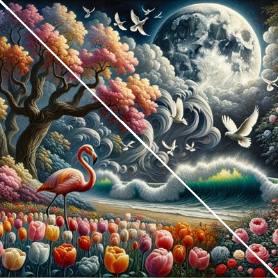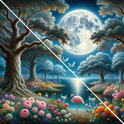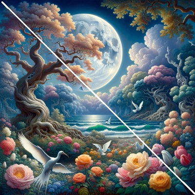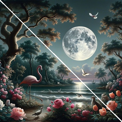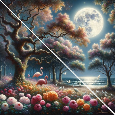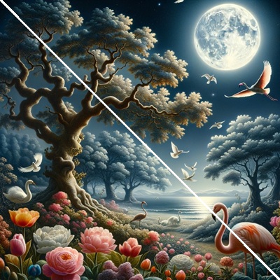 Emotional Impact: Natural imagery often triggers positive emotions, such as tranquility, joy, or nostalgia. The graceful swan, vibrant flowers, and serene lake can serve as a reminder of purity, elegance, and the simplicity of nature, offering an emotional escape from daily stress.