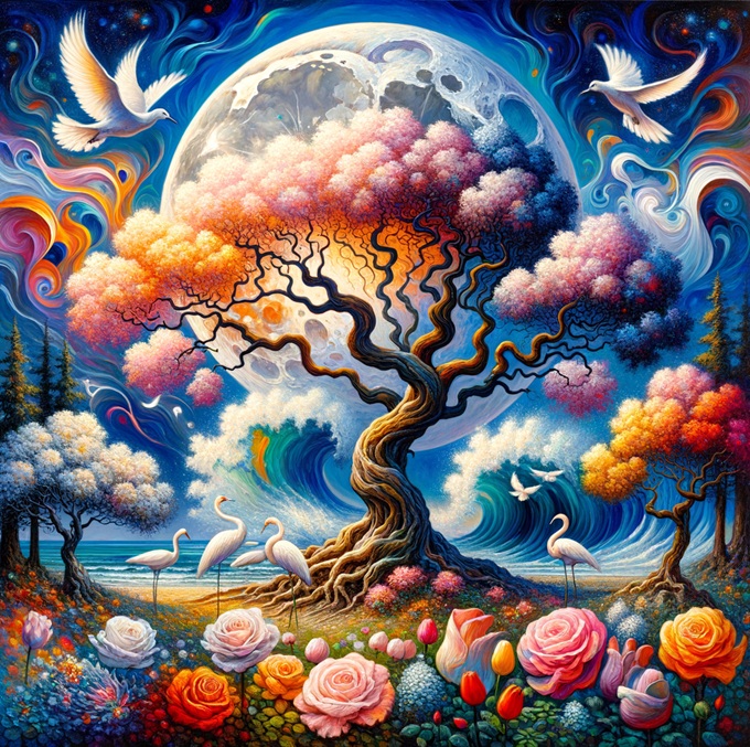 Aesthetic Appeal: The serene combination of natural elements like a lake, swan, flowers, and trees creates a visually pleasing scene. Such beauty can evoke feelings of calm, peace, and appreciation for nature’s harmony.
