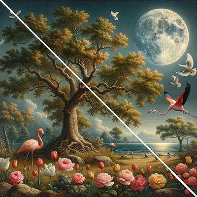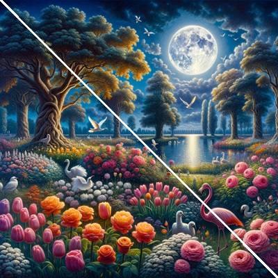 Emotional Impact: Natural imagery often triggers positive emotions, such as tranquility, joy, or nostalgia. The graceful swan, vibrant flowers, and serene lake can serve as a reminder of purity, elegance, and the simplicity of nature, offering an emotional escape from daily stress.